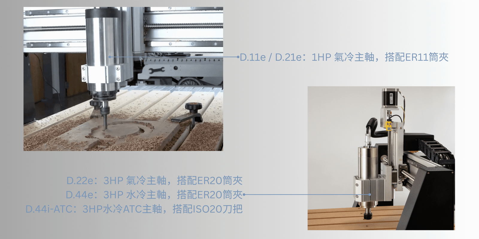 – D.11e / D.21e / D.22e:0.8kw 1HP 氣冷主軸