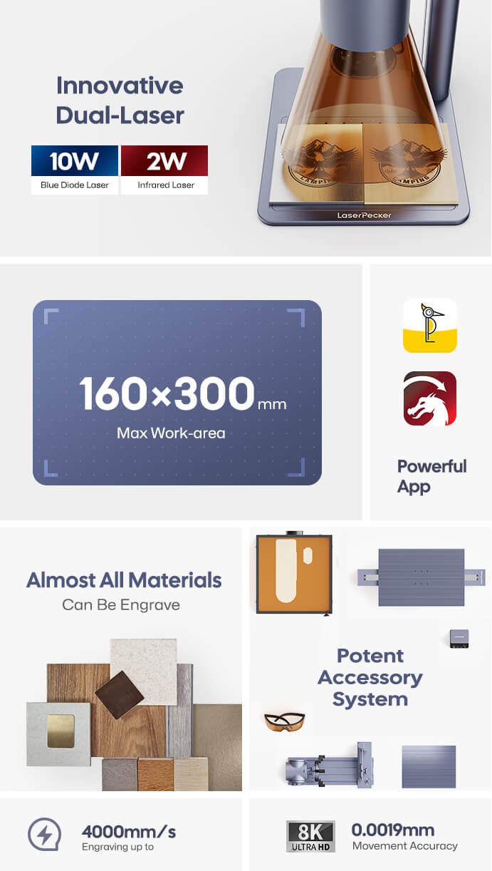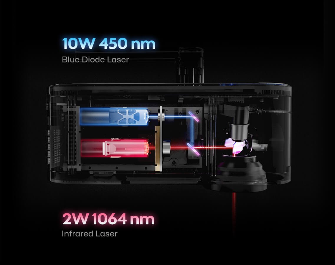10W 450nm 藍色雷射可加工材質:木材、壓克力、玻璃、皮革、陶瓷、紙張、石材、金屬等