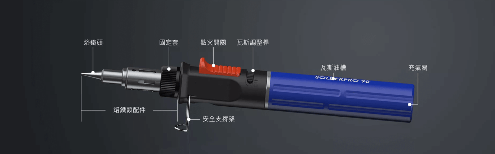 此型號為可支援長時間操作的輕巧型烙鐵,填充後操作時間可達53分鐘。
